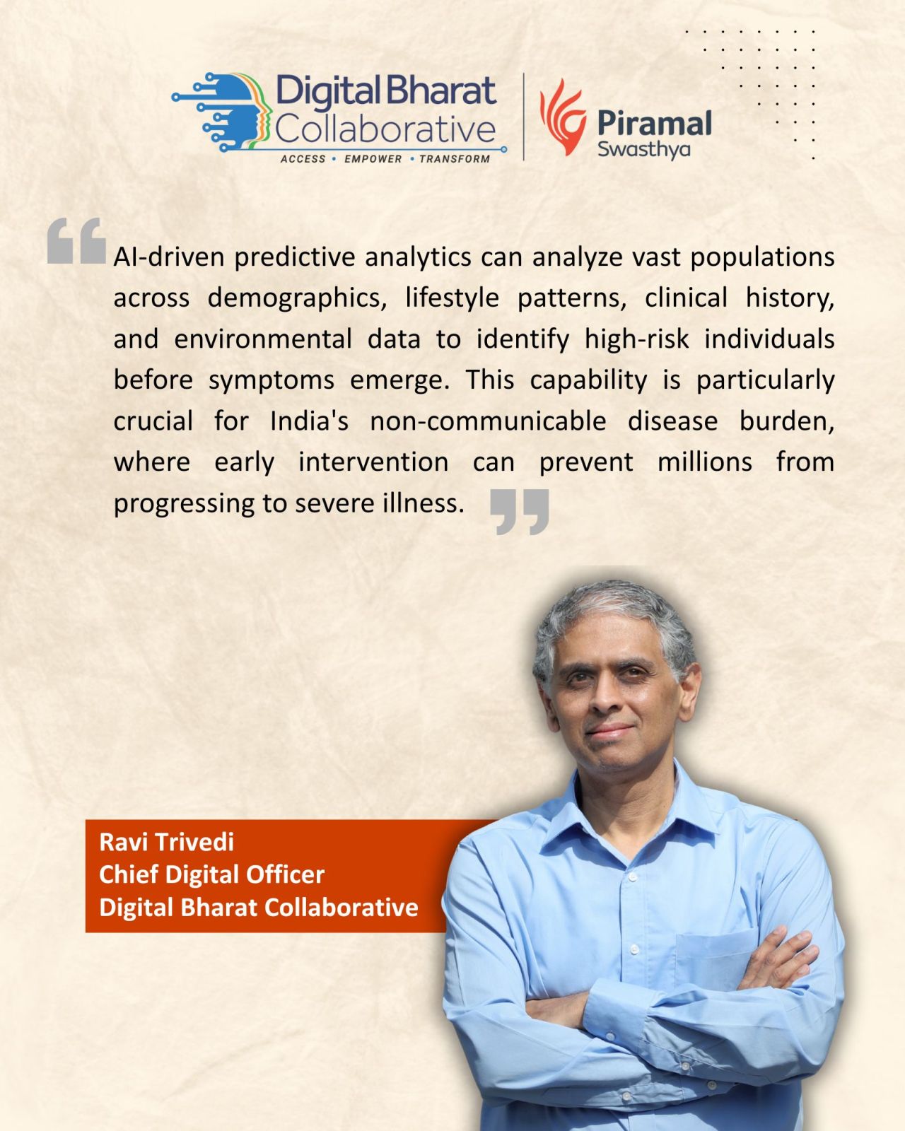 Ravi Trivedi, Chief Digital Officer at Digital Bharat Collaborative (a part of Piramal Foundation), shares key insights in his article on how AI can transform public health in India.