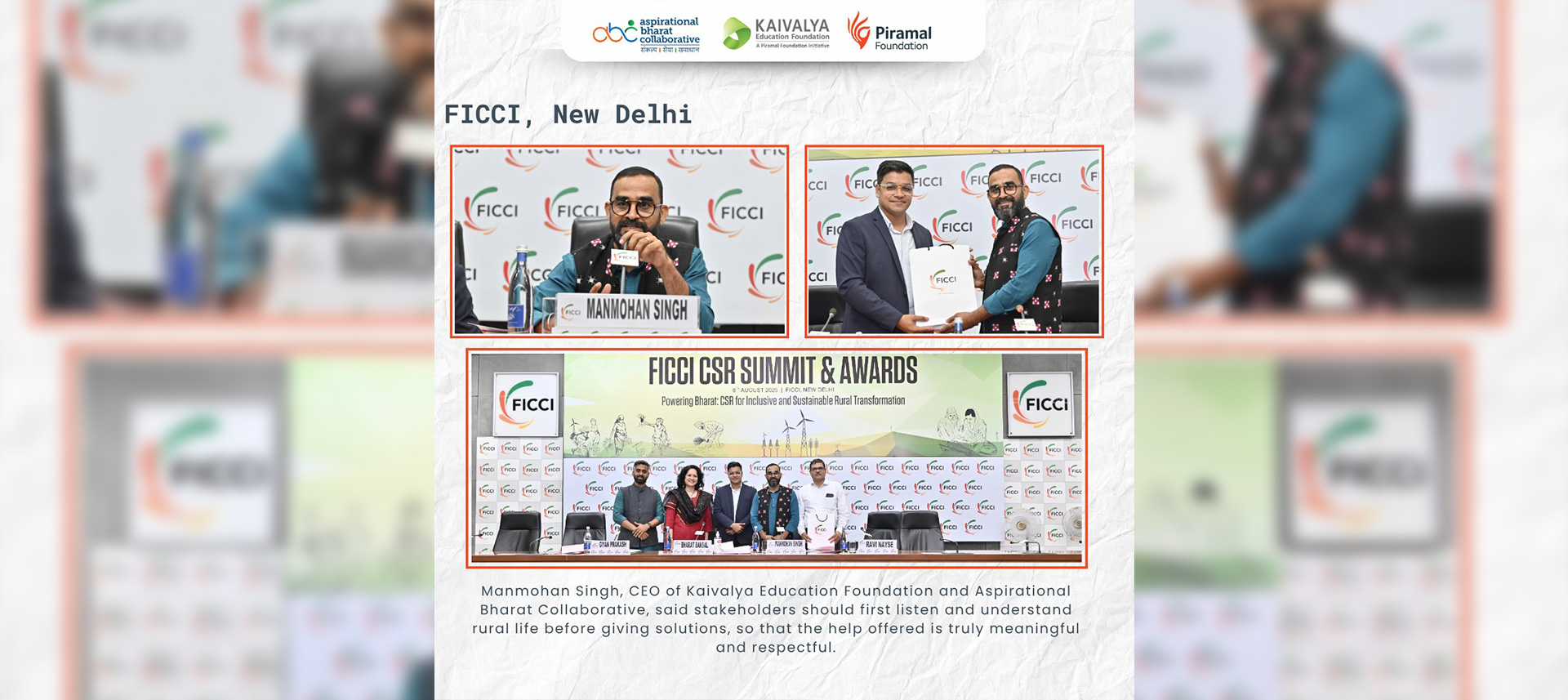 Manmohan Singh, CEO, Aspirational Bharat Collaborative, moderated a Federation of Indian Chambers of Commerce and Industry (FICCI) session. He said that before offering ready-made solutions such as finance, market linkages or capacity building, stakeholders must first Listen, Unlearn, Re-Learn realities and immerse themselves in the rural context. He emphasized that they should understand the local realities, lived experiences, aspirations and resourcefulness of potential entrepreneurs before proposing any intervention. Only by seeing the world through their eyes can truly rooted and respectful solutions emerge.