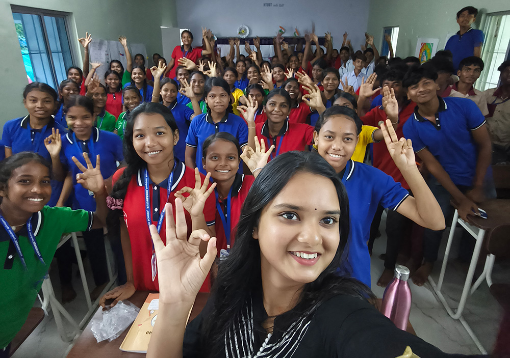 Purvika’s commitment grew from the small but powerful moments of her childhood. At home, conversations about periods were whispered and rushed; her mother would hide pads in the back of a cupboard and tell her to “be careful” rather than explain why. Next door, a neighbour’s daughter regularly missed classes because the family had no sanitary materials; once she developed a severe infection and the family blamed her “bad luck” rather than lack of care. These household silences stayed with Purvika. When she became a Gandhi Fellow and started engaging with adolescents, she recognised the same hush, only now could she do something about it. She wanted to turn the whispers into knowledge, and knowledge into an agency.